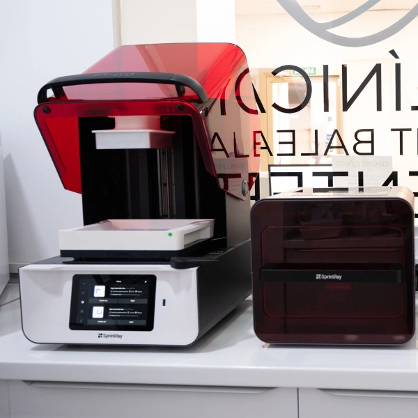 Con la impresora Sprintray fabricamos férulas, guías quirúrgicas y prótesis provisionales en nuestra propia clínica dental en Palma de Mallorca. Menos esperas, mayor precisión y un ajuste perfecto para cada paciente.